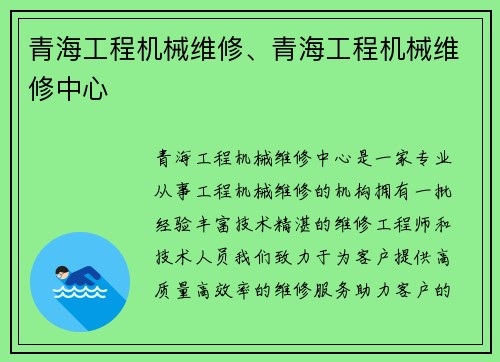 青海工程机械维修中心是一家专业从事工程机械维修的机构,拥有一批经验丰富、技术精湛的维修工程师和技术人员。我们致力于为客户提供高质量、高效率的维修服务,助力客户的工程机械设备保持良好的状态,延长设备的使用寿命,提高设备的工作效率。无论是挖掘机、推土机、装载机还是压路机等各类工程机械设备,我们都能为您提供专业的维修服务。我们的维修中心配备了先进的维修设备和工具,能够满足各种工程机械设备的维修需求。我们的维修团队经验丰富、技术过硬,能够迅速准确地找出设备故障,并进行修复。我们秉承“客户至上、质量第一”的宗旨,竭诚为客户提供最优质的维修服务。
